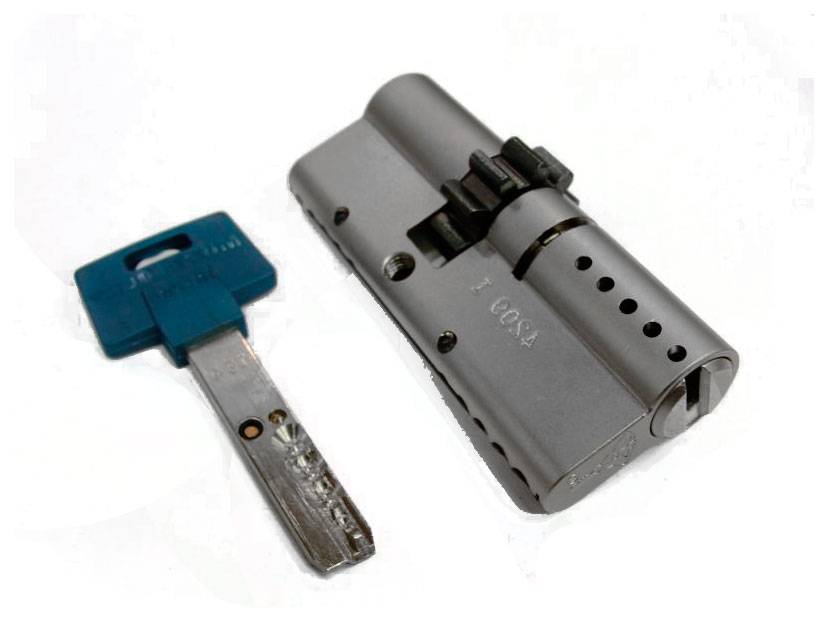 Попытка вскрыть дверь с таким замком чужим ключом вызывает блокировку стакана стержень-балансом. Защита от просверливания, обеспечивается наличием твердосплавного диска.
