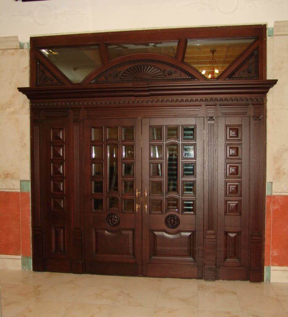 Такие двери особенно роскошны, куда бы ни шло это направление. Ими украшают дворцы и особые помещения для заседаний государственных представителей. Для оформления коридора часто используется форма арки сверху. Изысканная фурнитура, позолоченная резьба, насыщенные тона, изящные контуры — все это придает особый колорит и наполняет пространство роскошью.
