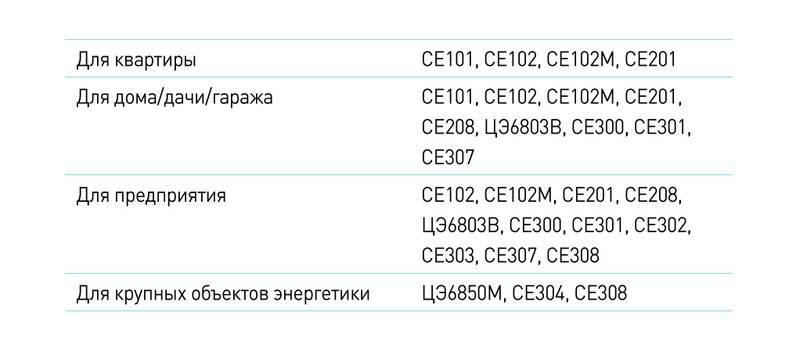 нескольких типов электросчетчиков из России, Белоруссии, Украины и Литвы.