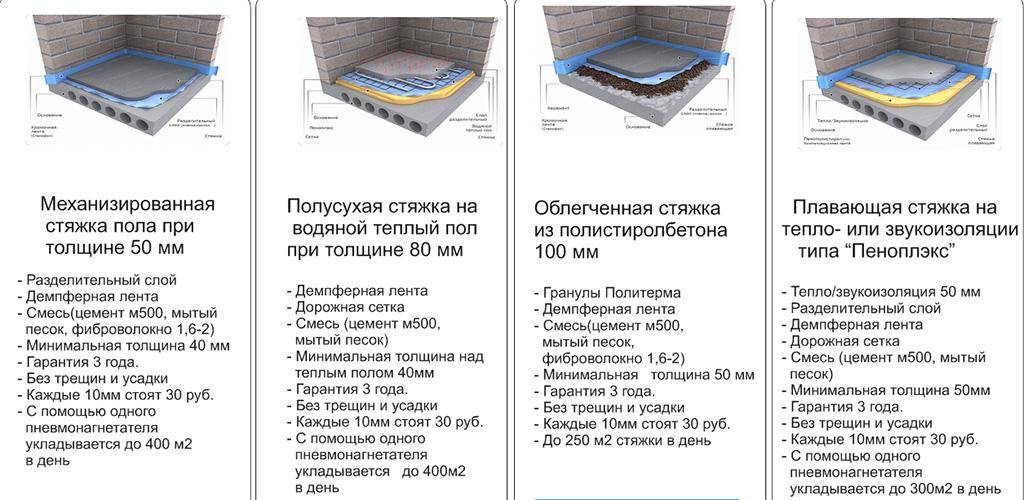 По способу заливки различают: мокрую, полусухую и сухую стяжку.