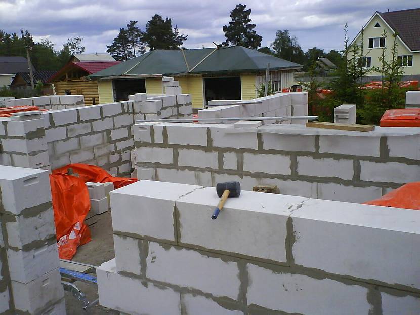 Технология кладки керамзитобетонных блоков мало чем отличается от технологии кирпичной кладки стен. Разница лишь только в резиновой киянке (резиновый молоток), которую применяют для выравнивания блока на стене.