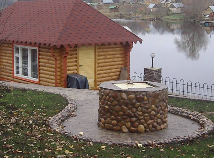 Важно! Оформление колодезной шахты должно сочетаться с наружным дизайном загородного дома