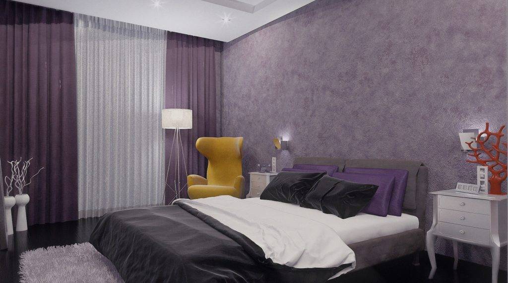 Фиолетовая гамма подойдет для интерьера в современном стиле. Беспроигрышными вариантами являются: сиреневый, грязно-белый, оливковый, серый. Если при подборке обоев, подобран яркий и насыщенный фиолетовый, то желательно его применять как дополнение к основной базе.