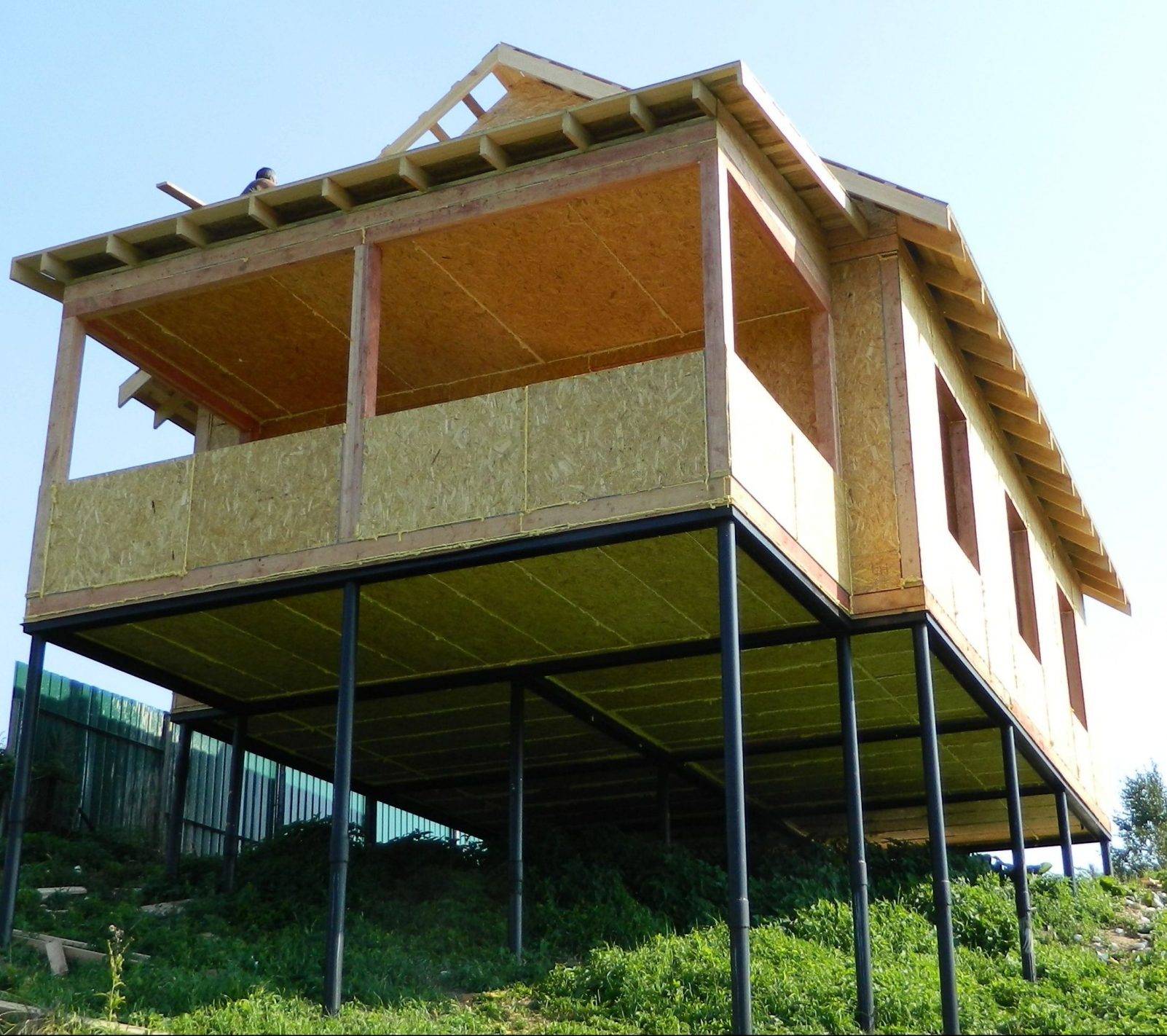 - При обустройстве фундамента на сваях необходимо продумать, как утеплить и отделать цокольный этаж.