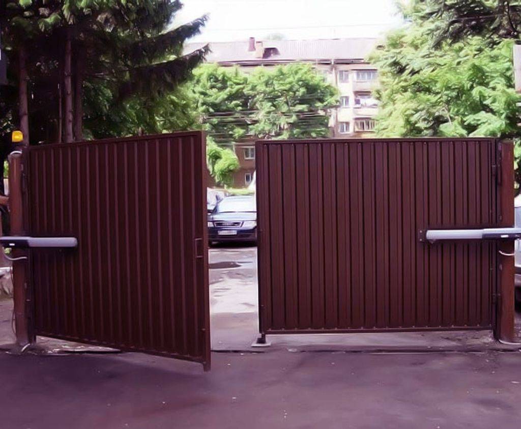 - Распашные изделия универсальны. Их можно установить не только на дачном участке, но и на промышленном предприятии, в офисном здании.