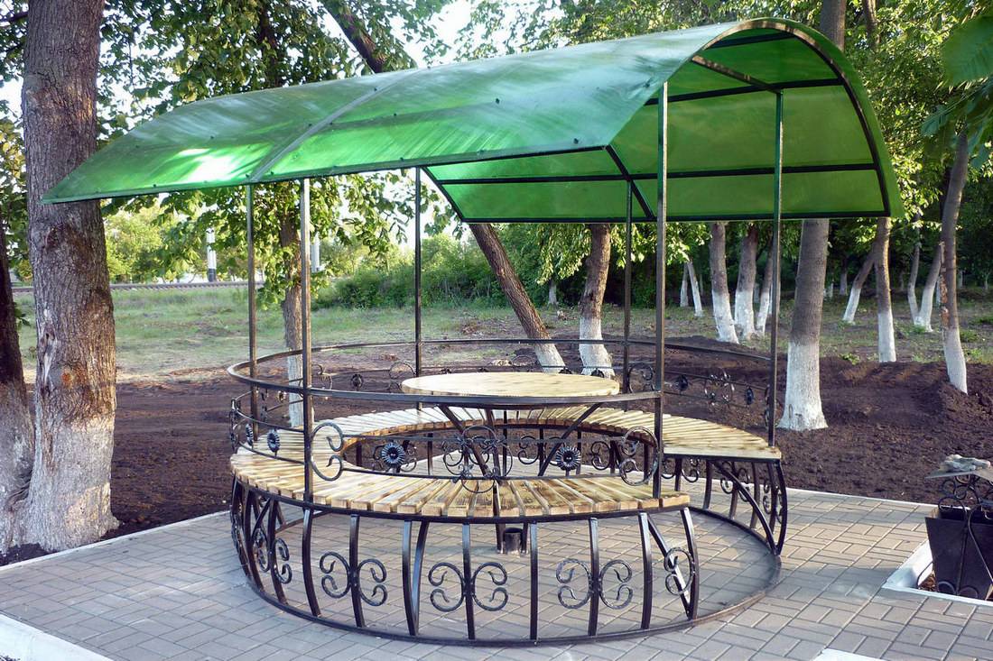 - Беседки – навесы. Легко строятся своими руками, а точнее варятся из металлического профиля. Также часто навесы заказываются в мастерских, занимающихся художественной ковкой.