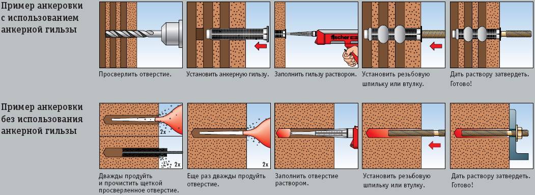 Последовательность крепления химического анкера