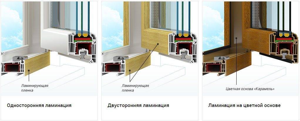 Существуют несколько видов ламинирования окон, классификация которых зависит от степени покрытия профиля, а это влияет и на стоимость.