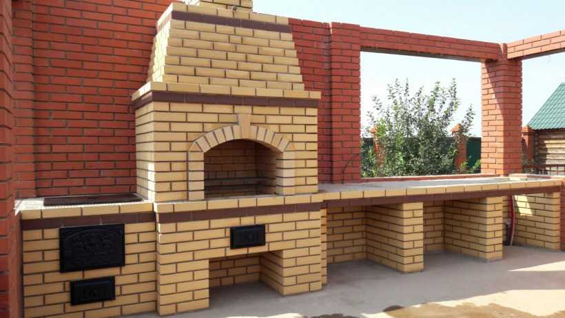 Смысл постройки от этого особо не меняется. Также используется кирпичная кладка, внутри которой топятся дрова и происходит жарка мяса.