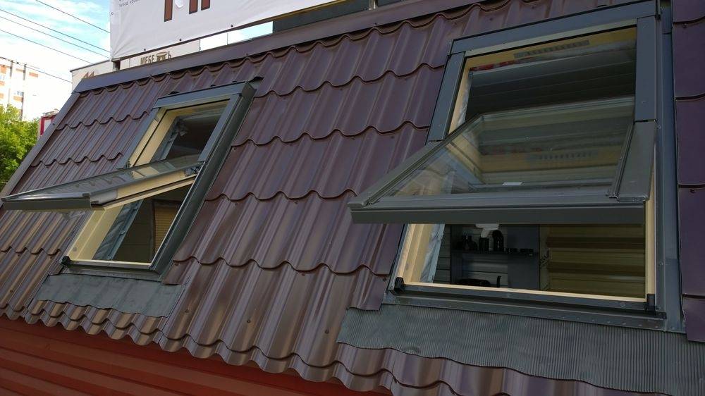 Отдельно следует отметить работу с кровельным материалом. Монтаж мансардных окон в металлочерепицу производится аналогично, равно как и в случае с профнастилом или листовым железом. Если же речь идет о мансардных окнах в фальцевой кровле или подобных материалов, то обшивку вначале потребуется разобрать.