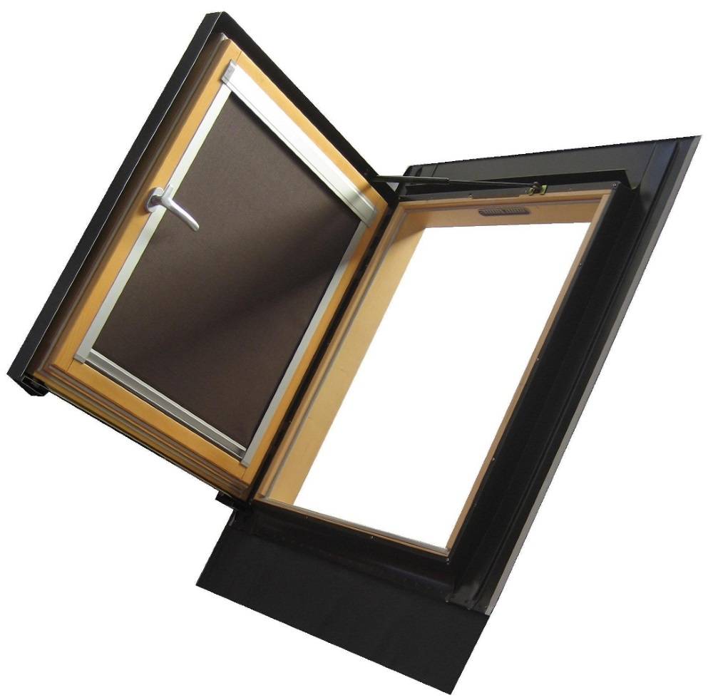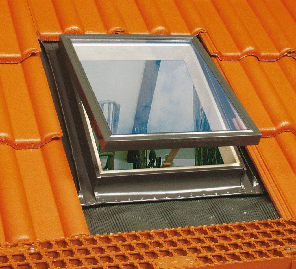 - Мансардное окно с дополнительным нижним элементом. Его устанавливают сразу же под окном, располагая этот элемент в одной плоскости с устанавливаемым «коридором» для естественного освещения.