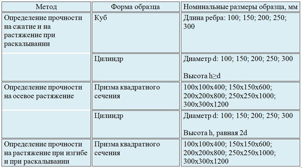 От метода, используемого для определения прочностных характеристик, зависит вид контрольных образцов.