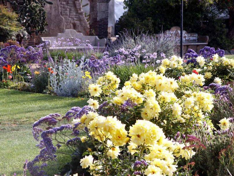 Особенно эффектно смотрится миксбордер с розами, при этом предпочтение отдается парковым видам. Также идеально будут смотреться на одной клумбе все виды вербен, полынь, розмарина, ромашки.