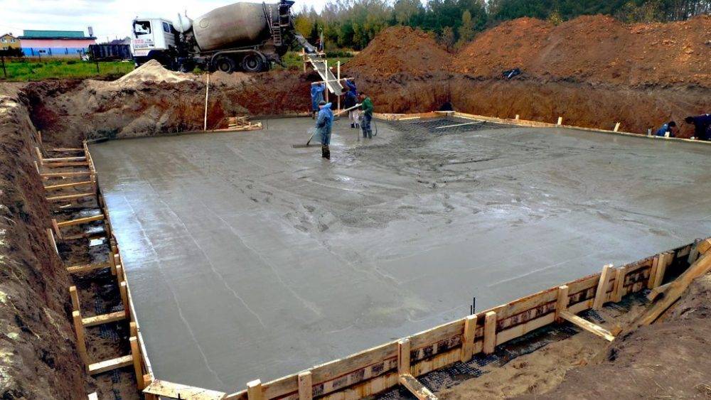 Заливка плитного фундамента
