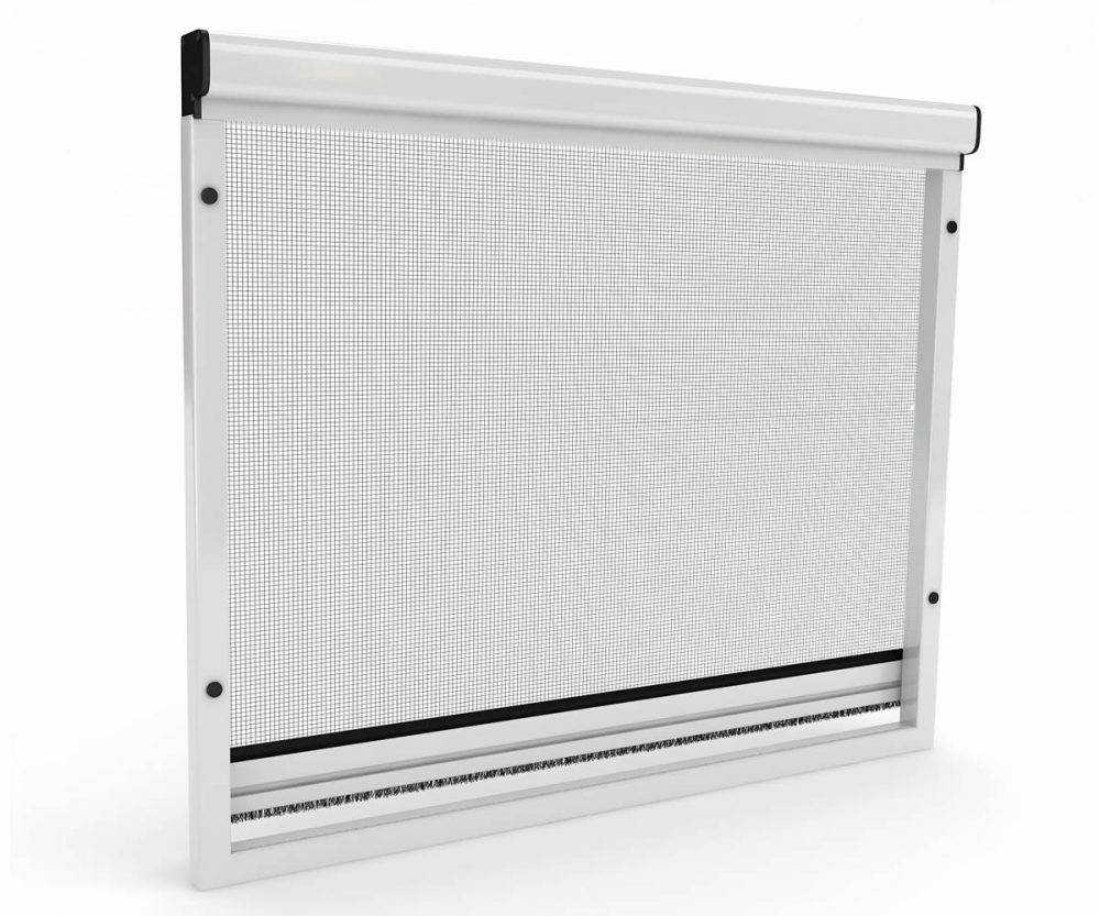 Такой подвид представляет собой рулон сетки. Он сверху или сбоку прикреплён к цилиндру в коробе, а снизу или с противоположной боковой стороны удерживается специальным креплением. Короб барабана оборудован устройством для сворачивания и крепится над дверным полотном с наружной стороны помещения. В случае, если вы устанавливаете москитную сетку на балконную дверь, то такую конструкцию можно устанавливать с любой стороны.