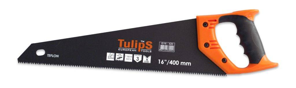 Для производства инструмента украинский производитель использует каленый металл. Зубья имеют трехгранную заточку, которая обеспечивает распиловку в любом направлении. Ручка изготовлена из резино-пластикового материала. Длина полотна – 55 см. Цена – от 800 рублей.