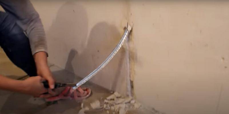 - Края профиля подцепляют стамеской и отгибают, затем хватают пассатижами и удаляют, накручивая на себя. Делать это нужно медленно, чтобы штукатурка отошла от конструкции без последствий.