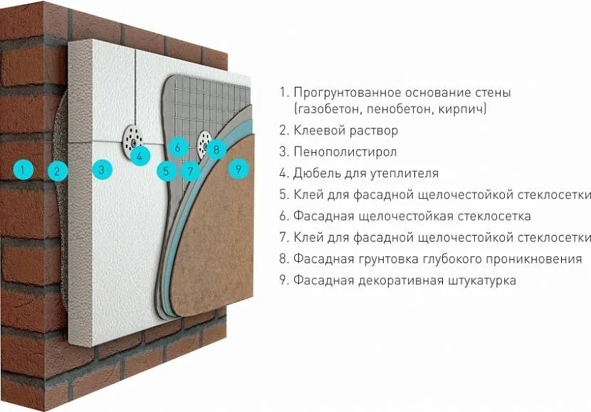 - хорошая адгезия с разными материалами фасадов и т.д.