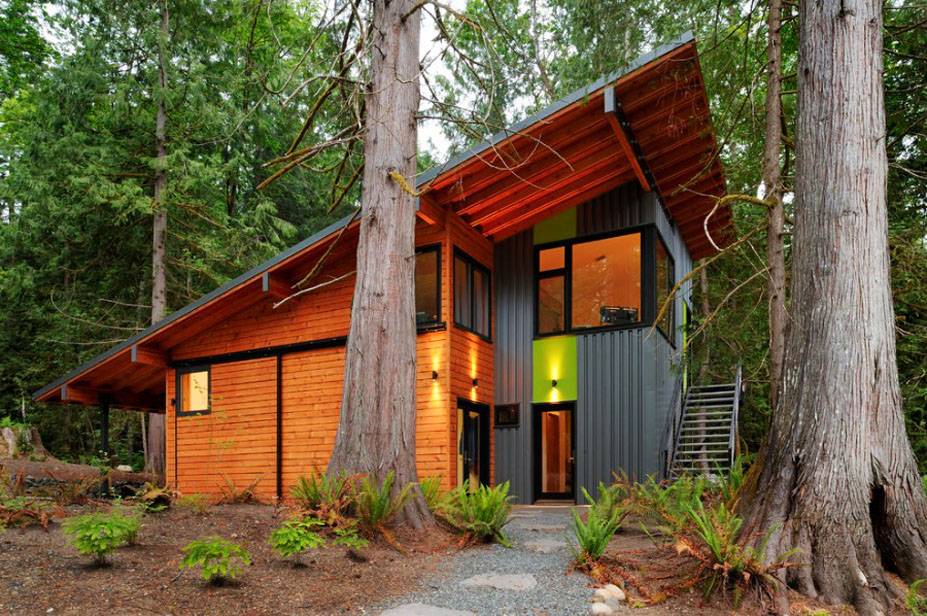 Наклонная односкатная форма лучше, чем двускатная, хотя она не позволяет создать удобное чердачное пространство. Зато проще с системой проветривания: аэраторы и вентилируемый конек просто не нужны.