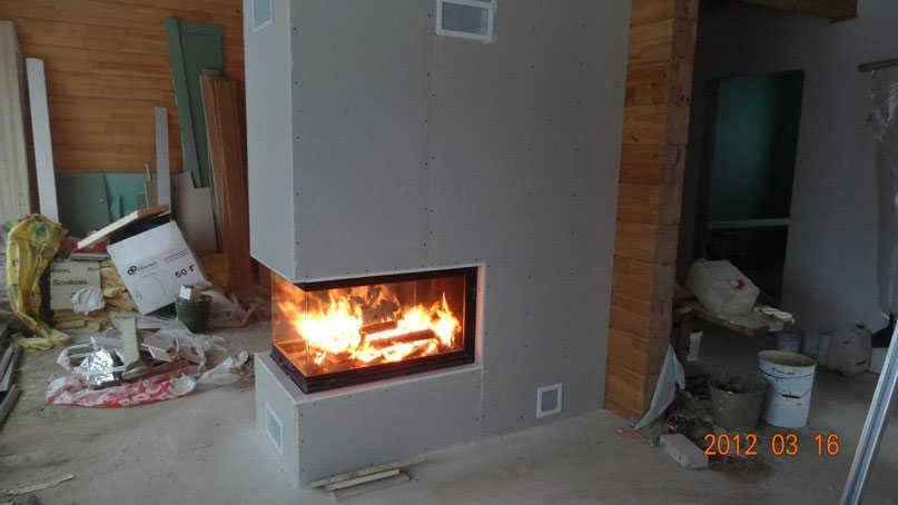 Существуют разные способы монтажа камина, которые определяют вариант использования гипсокартонного листа: