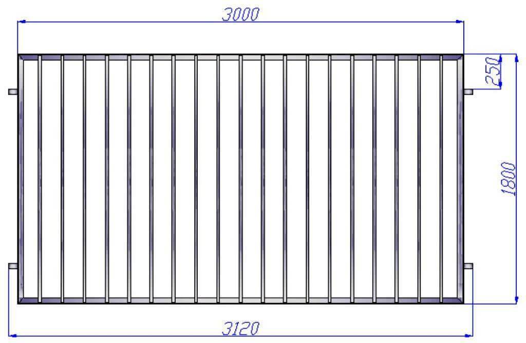 - Сначала создавалась рама каждой из секций. Для этого использовались мелкие профилированные трубы. Мы изготавливали каждую секцию размером 2400*1800 мм.