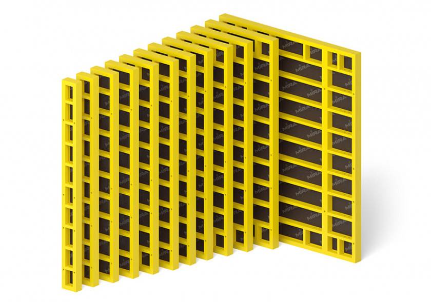 - Мелкощитовая. Имеет вес до 50 кг и высоту 1-2,5 м. Это универсальная опалубка, которая актуальна для формирования разных бетонных элементов строений (в идеале – небольших).