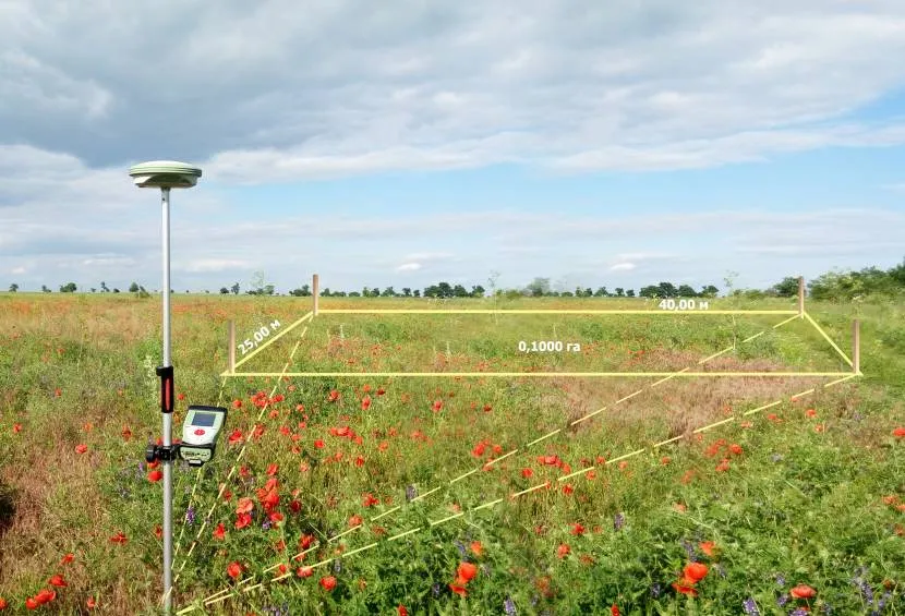 - С помощью спутникового оборудования (GPS-приемника). Оно позволяет безошибочно вынести границы территории, используя спутниковую привязку к системам координат. Измерения выполняются быстро с высокой точностью (некоторые компании обещают выполнить работу в поле за 30 минут). Необходимые точки рассчитываются автоматически, после чего формируется схема местности.