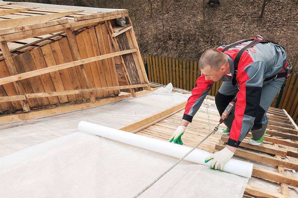 Если кровельная конструкция и межэтажное перекрытие изготовлены из древесины, то установка мембраны для гидроизоляции выполняется на подготовленное основание.