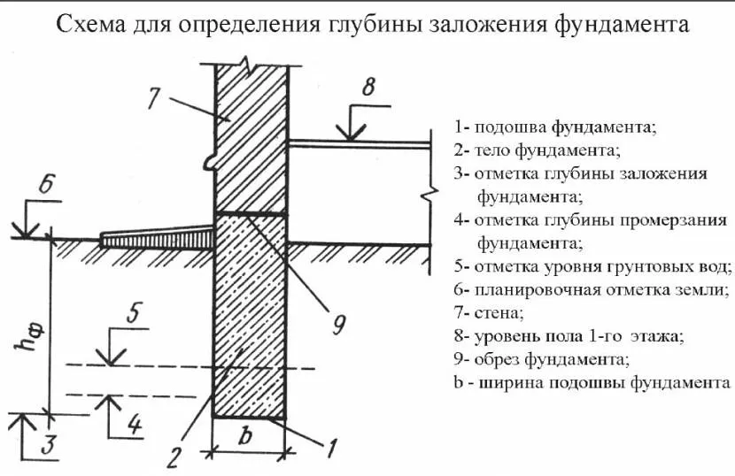 После определения несущих нагрузок выполняется расчёт ширины подошвы, глубина залегания и высота конструкции.