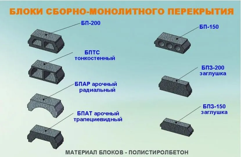 Блоки для сборно-монолитных перекрытий бывают различных форм, что делает их применение чрезвычайно удобнымИсточник stroyfora.ru