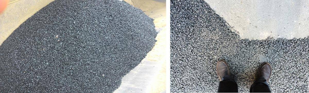 Асфальтогранулят и асфальтовая крошка используется для укрепления асфальтового покрытия вместо обычного щебня — эти материалы получают путем вторичной переработки, поэтому они намного дешевле.