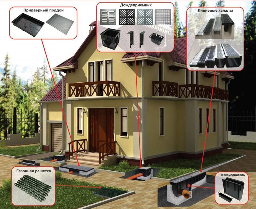 Дренажная система качественно справляется со своей работой только в случае ее правильного проектирования. В зависимости от вида строения и его нюансов при строительстве, используют 3 вида водоотведения от здания по их расположению: