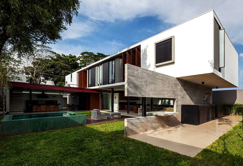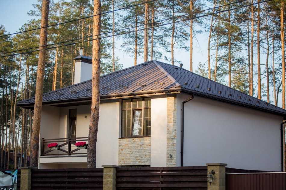 Тип кровли на таком здании во многом зависит от его формы. Прямоугольный периметр хорошо сочетается с двухскатной или односкатной крышей. Квадратные дома можно оснащать более сложными ломаными или шестискатными кровлями.