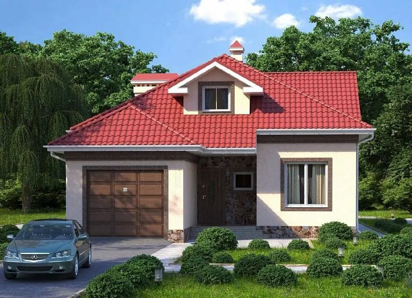 Проект одноэтажного дома с мансардой и гаражом на одну машину