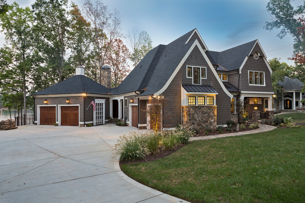 Небольшой загородный дом с двумя гаражами в классическом стиле