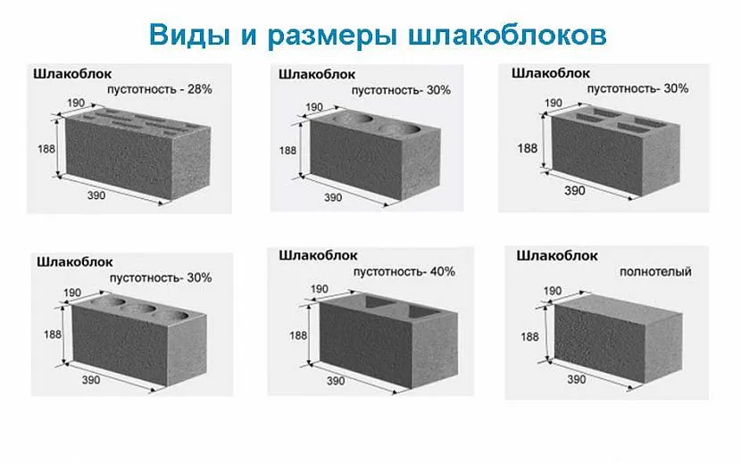 Размеры бетонных блоков, чаще всего встречаемых на рынке: