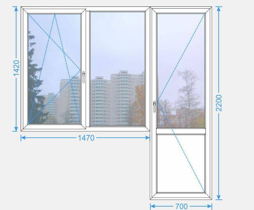 Для трехстворчатых окон это 2050*1400 мм (типовой дом) и 2040*1350 мм (хрущевка).