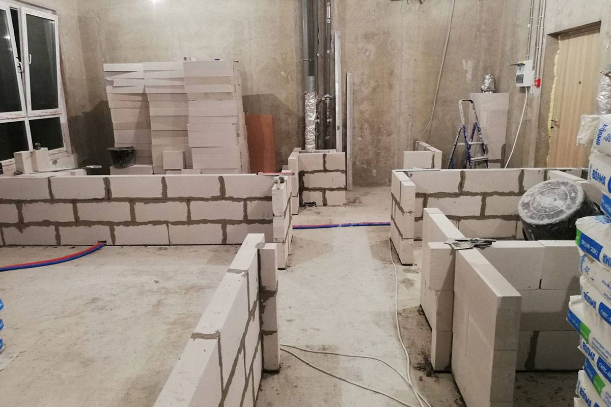 - при строительстве перегородок, самонесущих и несущих стен домов малой этажности без привлечения к работе грузоподъемного оборудования;