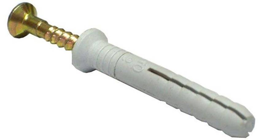 Мастер может использовать другой метод фиксации – шуруп с дюбелем. Тело уплотнителя изготавливается из полиэтилена, полипропилена или капрона и разделено на равнозначные части продольными щелями. По мере закручивания материал расклинивается, что обеспечивает полный контакт.