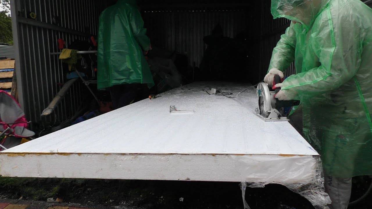 - В первую очередь настилается пол – может понадобиться обвязка, затем возводятся стены. При монтаже тщательно проверяется по уровню вертикальность и горизонтальность. Стыковка плит между собой производится соединением гребень-паз, и при перекосах нельзя добиться ни жесткого соединения, ни должной герметизации.