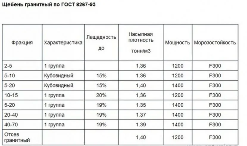 Щебень данного вида не только обладает хорошими качествами, но и отвечает ряду важных характеристик по ГОСТ 8267 93: