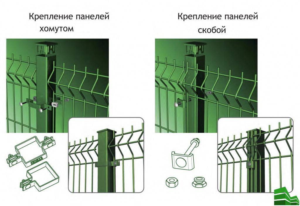 Процедура самая простая — сетку прикладывают к опоре и фиксируют с помощью прижимной пластины или скобы. Рекомендуется пригласить помощника, который будет поддерживать секции, пока будет производиться работа с крепежами.