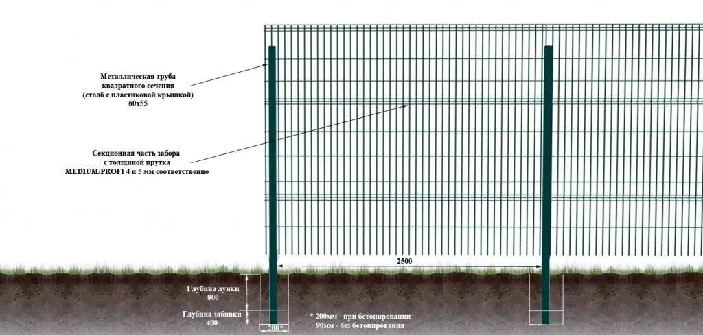 Сами по себе секции очень легкие, поэтому установка и монтаж забора не должен вызвать затруднений