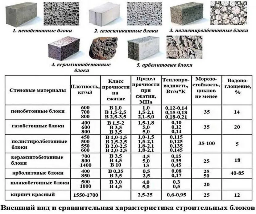 Сравнение характеристик строительных блоков Источник stroyfora.ru