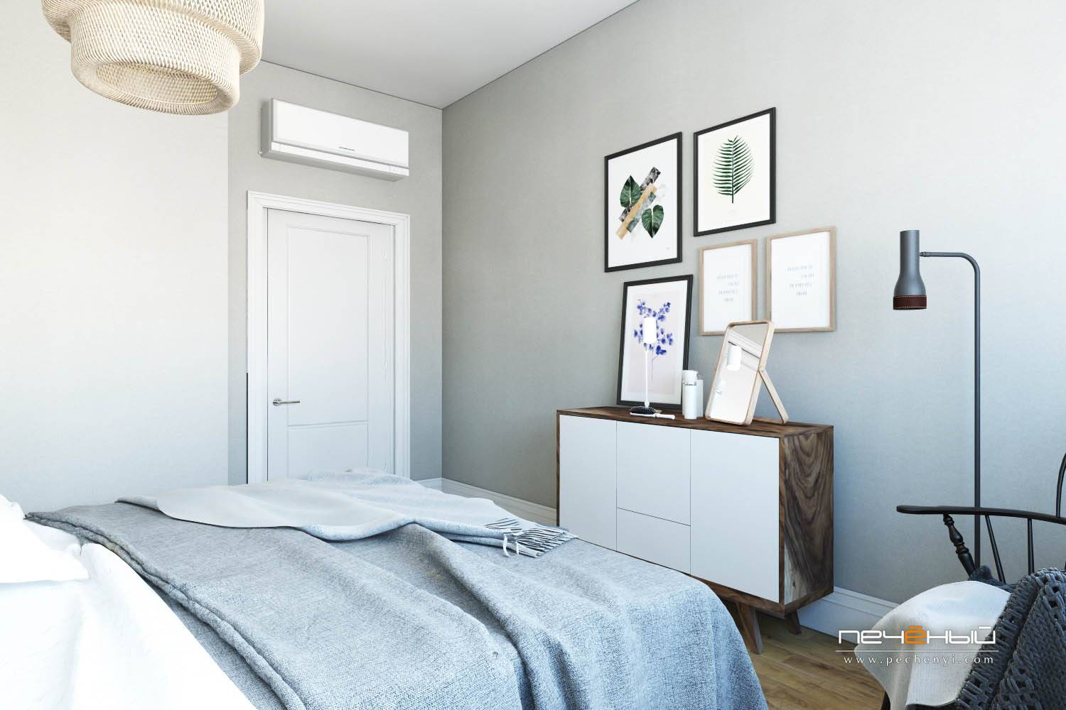 Минимальное количество тяжёлой мебели позволит получить максимально нежный интерьер спальни скандинавского стиля