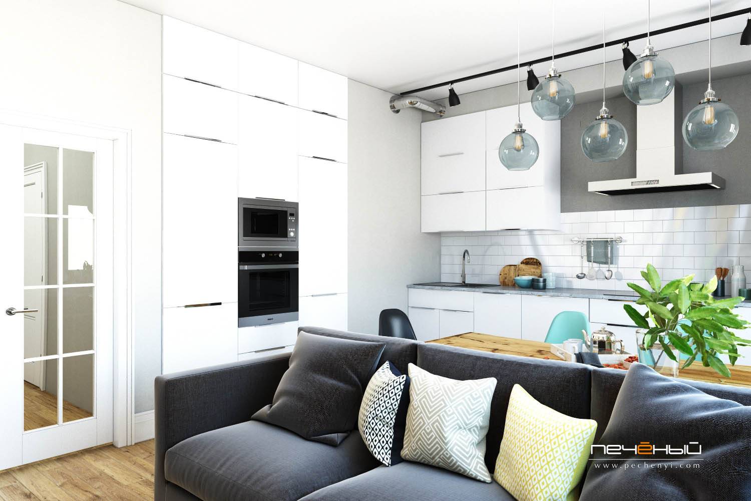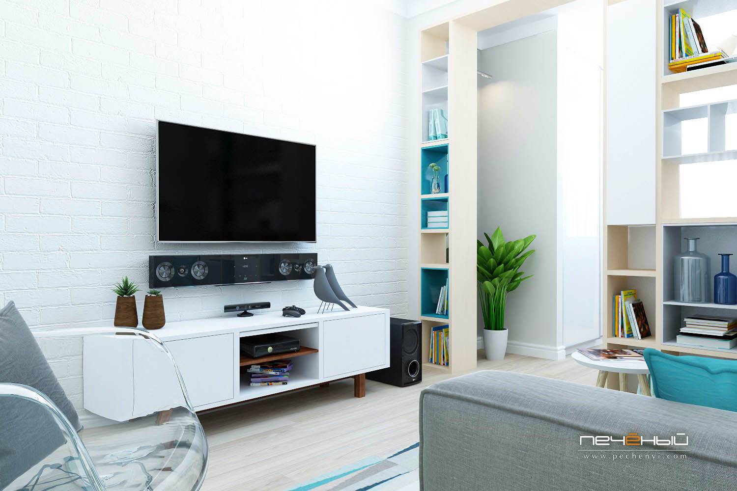 Иногда заказчики хотят в скандинавский стиль добавить цветов. В таких случаях получаются вот такие уютные маленькие квартиры.