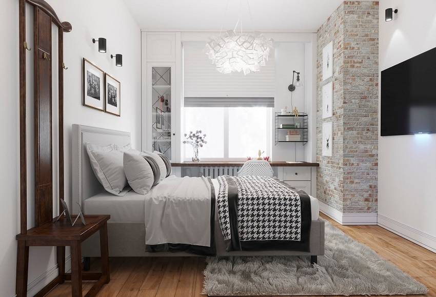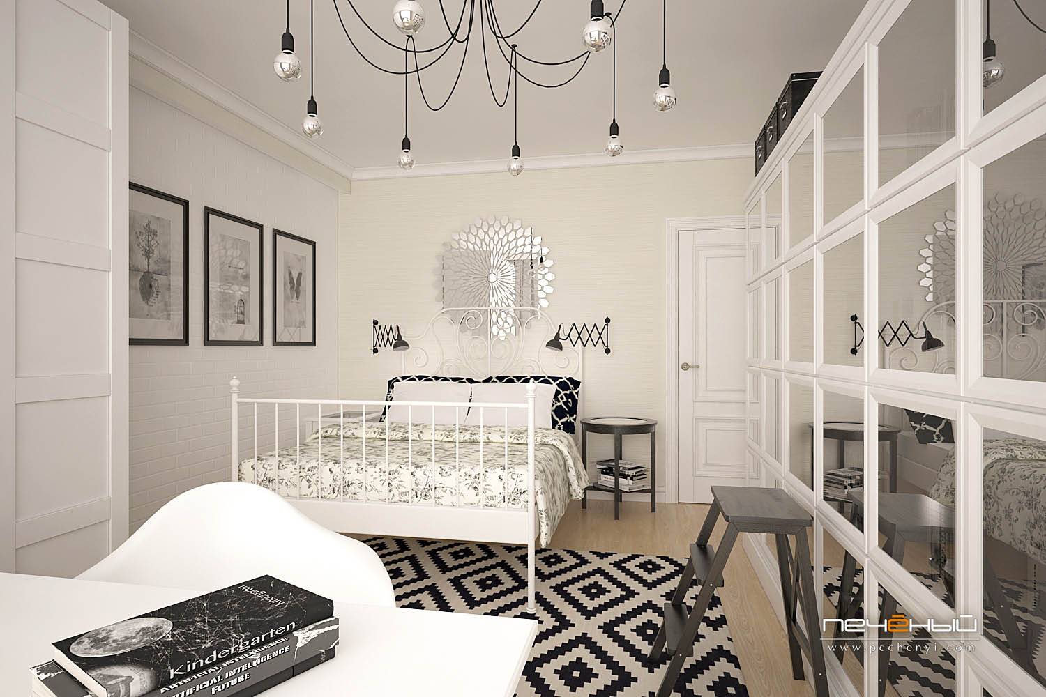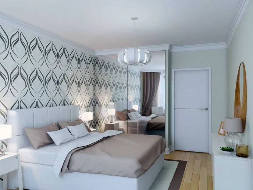 В спальне можно сделать монохромный интерьер, который будет смотреться стильно и эффектно. Использовав несколько ярких акцентов, помещению придается радостное и веселое настроение. Чтобы сделать комнату не такой, как у всех, можно поклеить в ней обои с принтом. Для этих целей выбираются мелкие рисунки с контрастными элементами.