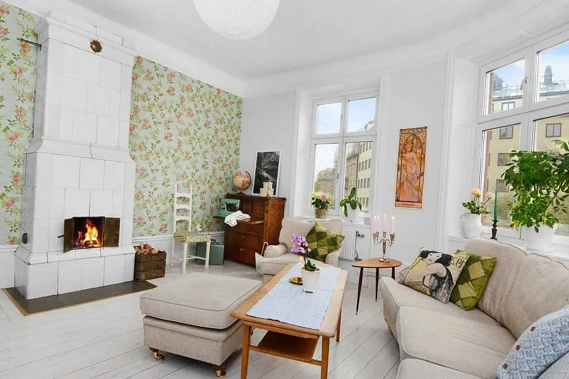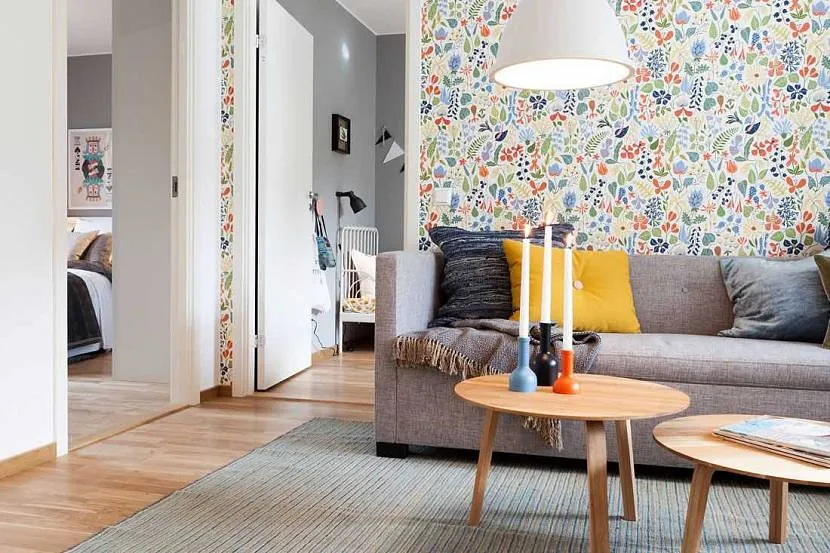 Если хочется немного выделить свой скандинавский интерьер из тысячи похожих, используйте обои с готовым рисунком. Но не каждые обои подойдут. Лучше всего рисунки с мелкими контрастными элементами.