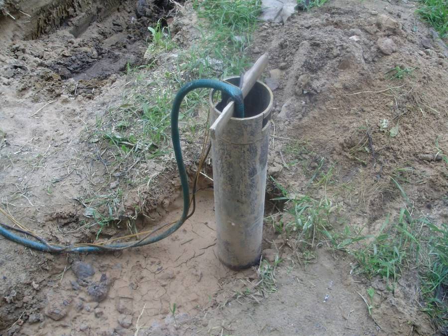 - Грунт, вынимаемый из скважины, выбирается вручную. Если это шлам, нужно установить грязевой насос, который будет его откачивать прямо из обсадной трубы.