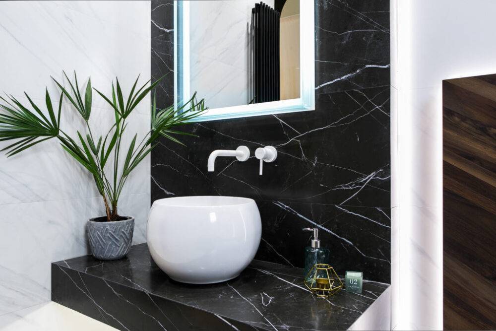 Так, для классики стоит обратить внимание на камень (или плитку под натуральный камень), лепнину, сантехнику под благородные металлы и зеркала, минимализм потребует стекло, плитку светлых тонов, а, возможно, и пластиковые панели. Сегодня ассортимент материалов, ванн, раковин и смесителей впечатляюще широк, так что добиться желаемого интерьера не так сложно.